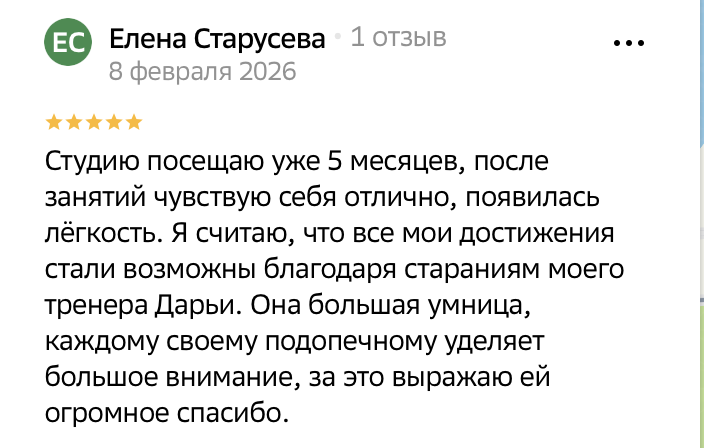 Ваше мнение очень важно для нас! Мы ценим ваш отзыв и хотим узнать, что вы думаете о нашей студии растяжки в Чите. Ваши отзывы помогают нам улучшать наши услуги и обеспечивать ваш комфорт.