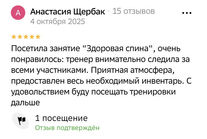 У нас более 12 направлений: от растяжки до силовых и здоровой спины. Вы найдете то, что подходит именно вам!